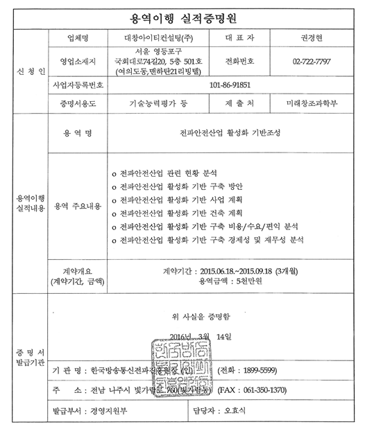 | ICT안전산업 활성화 기반조성사업 기획용역 |